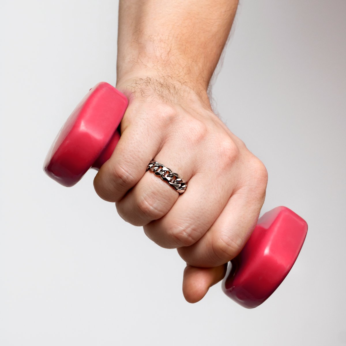 The Alex ring is made entirely of stainless steel, water resistant, perfume resistant and hypoallergenic.