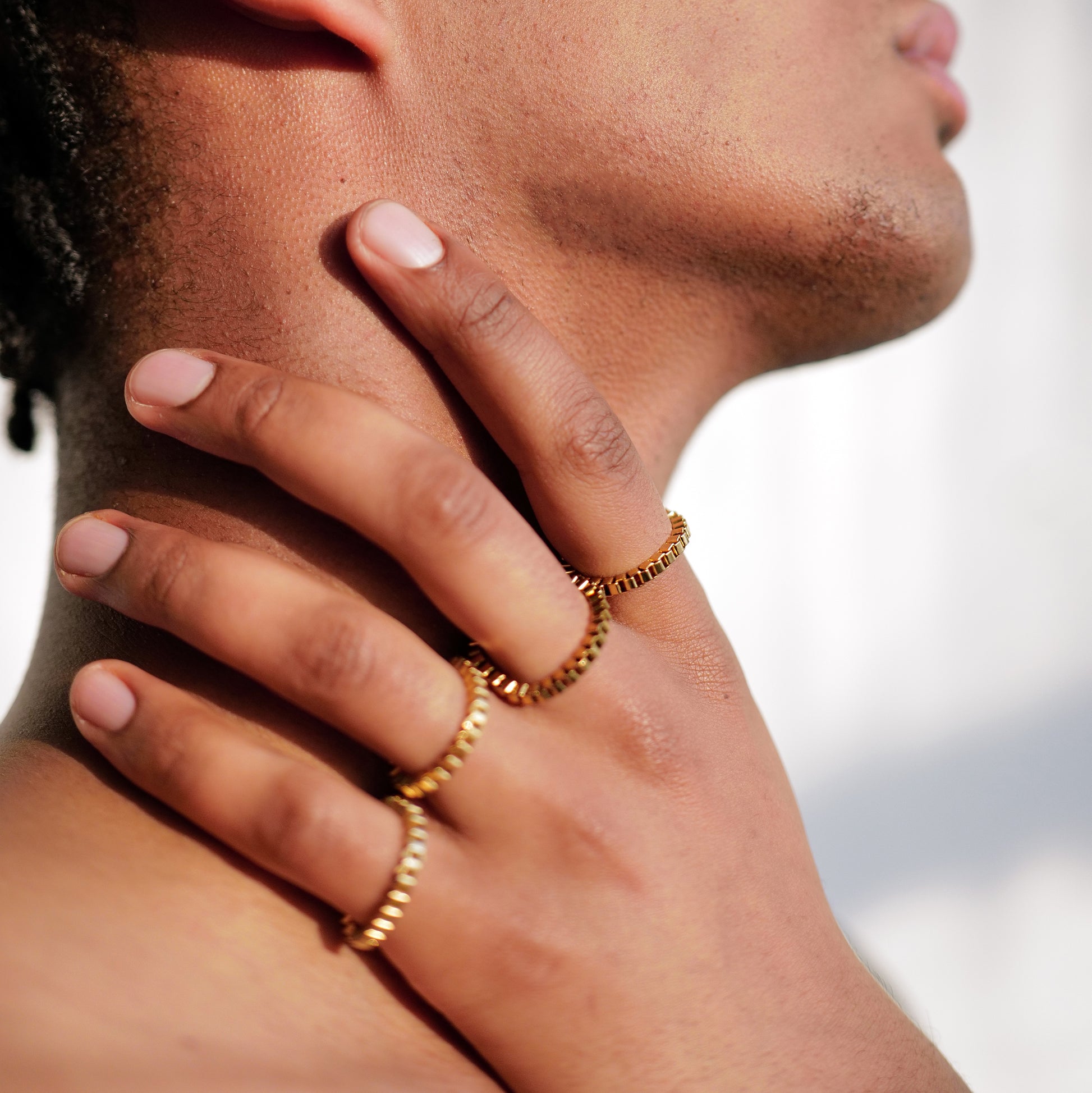 The Kris ring is made entirely of stainless steel, water resistant, perfume resistant and hypoallergenic. It is designed and handmade in Belgium.